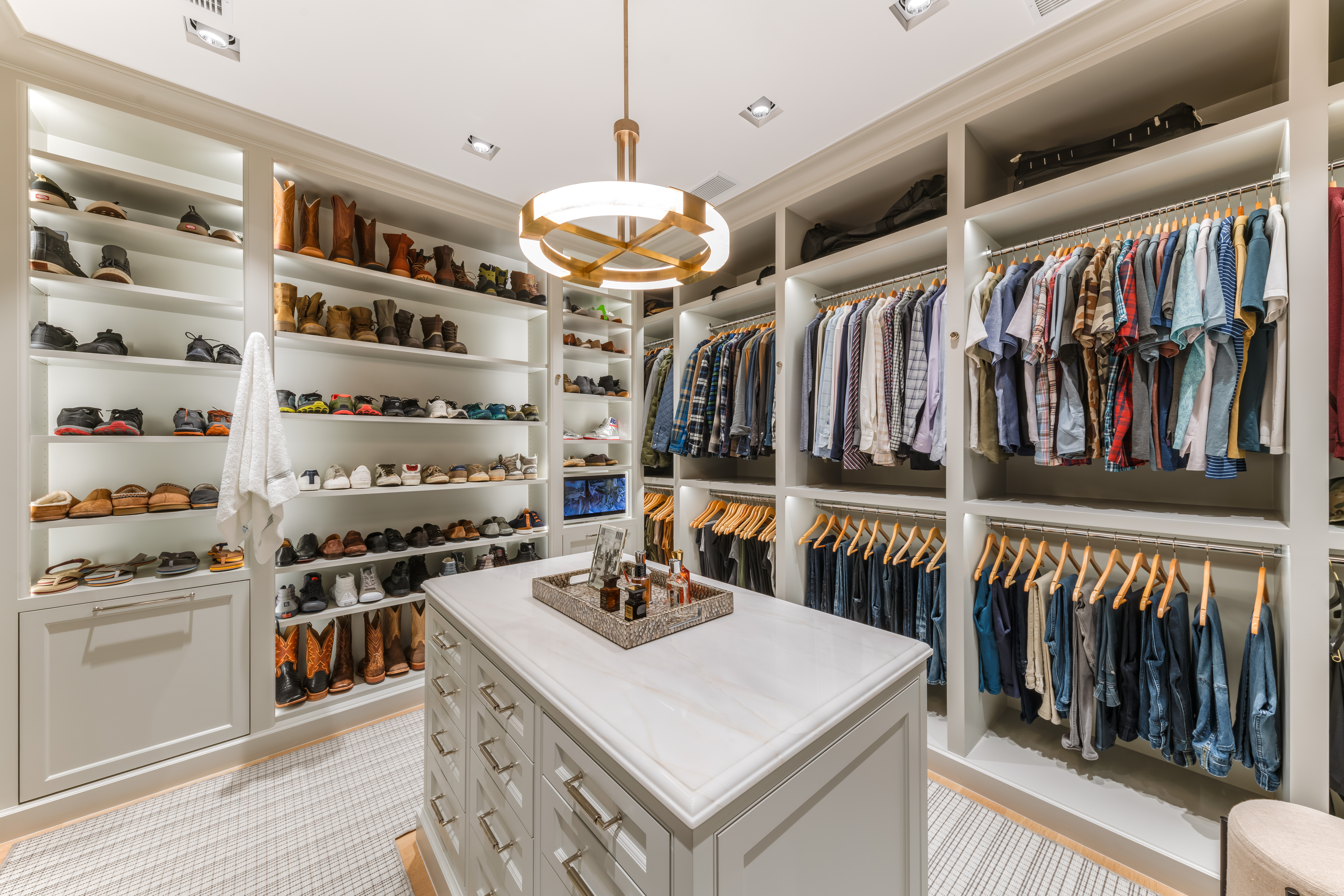 For the connoisseur, a climate-controlled wine room holds over 1,200 bottles in dual temperature zones—55° and 70°F. The downstairs utility room offers generous built-in storage and a dedicated dog-washing station, blending practicality with thoughtful design.